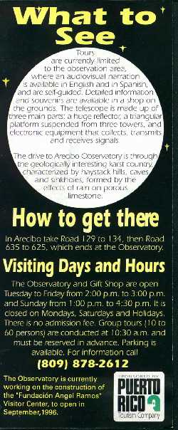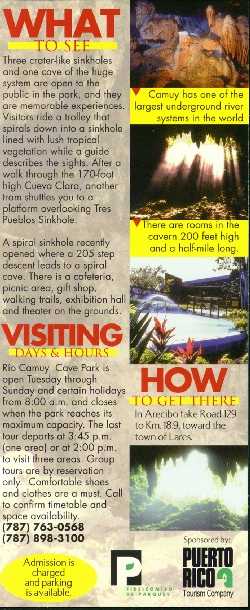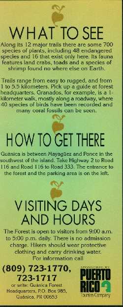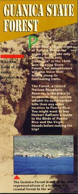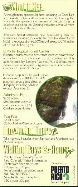 Flyers by the Puerto Rico Tourism Company The Arecibo Observatory face back Guanica State Forest face back Phosphorecent Bay at La Parguera face back Rio Camuy Cave Park face back El Yunque - Caribbean National Forest face back